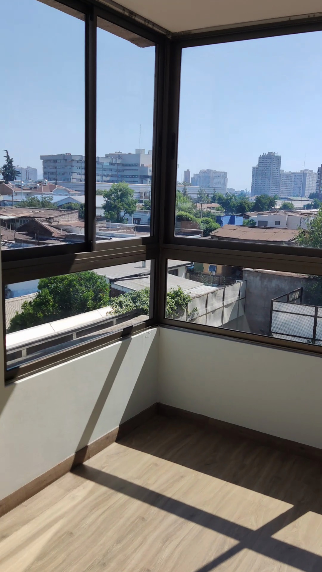 Departamento de 47 m² de superficie total y útil, ubicado en un edificio ubicado frente a Gendarmeria de Chile. El departamento cuenta con dos dormitorios y un baño equipado con tina, lavamanos y sanitario moderno. La cocina está equipada con encimera eléctrica, horno empotrado y muebles de tono madera, junto a espacios de almacenamiento funcionales. El ambiente principal posee ventanales de piso a techo y acceso a balcón cerrado, permitiendo apreciar el entorno urbano. El departamento incluye una bodega amplia, otorgando espacio adicional para almacenamiento. El edificio dispone de estacionamientos de visita, sala de lavandería equipada con lavadoras y secadoras automáticas, gimnasio con máquinas diversas y sala multiuso. En la azotea, se encuentra una terraza con quincho techado y vistas panorámicas. Estas áreas comunes están diseñadas para complementar el uso residencial, brindando opciones prácticas y recreativas dentro del mismo edificio. Excelente conectividad a una cuadra de METRO MATTA